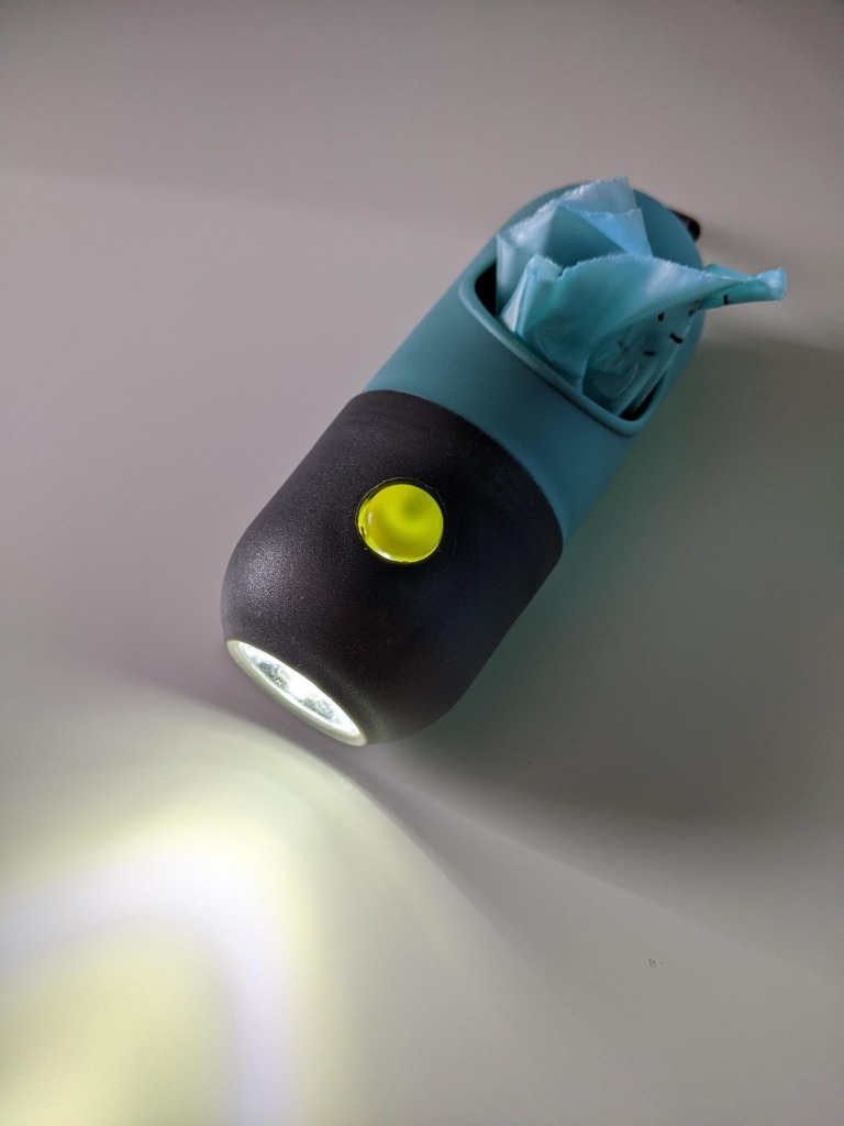- praktischer Kotbeutelhalter mit Licht und Karabiner